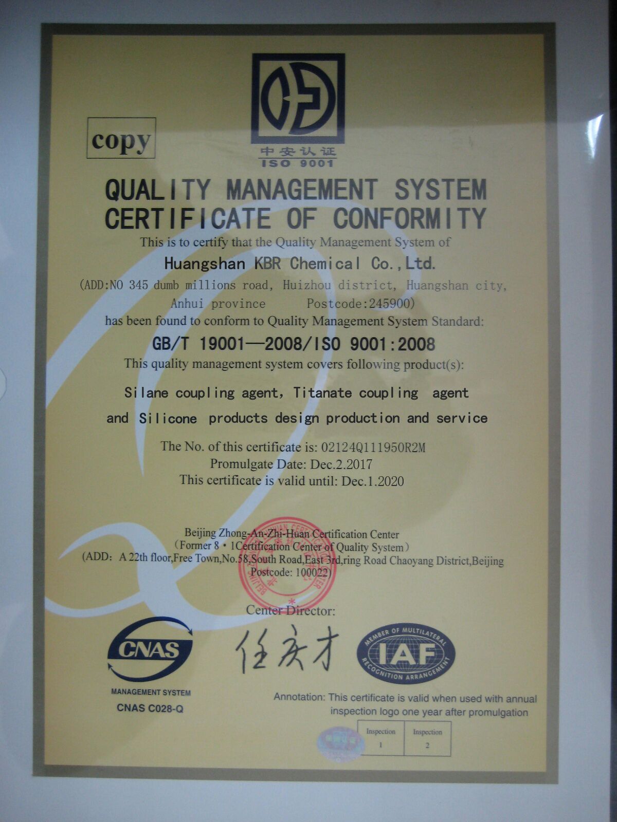 Huangshan KBR New Material Technology Co., Ltd. aggregates many senior organic silane and titanium engineers; cooperates with two famous domestic universities; professionally dedicates in organic silane and titanium etc high-tech product research, development, application and production; established organic silane development and application laboratory in Huangshan City Anhui PR and organic titanium development and application laboratory in Weifang City ShanDong PR,set up multifunctional production workshop and several pilot production devices, founded manufacturing base of organic silane and titanium as a joint stock cooperation way in DongYing City and JiNing City, ShangDong PR.